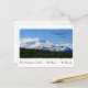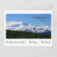 This postcard announcement features a clear photograph of Mt. McKinley in Alaska, also called Denali, with a lightly feathered, cut-out edge. The photo has forest green texts with a popular quote from John Muir 'The mountains are calling and I must go.' Since nature lovers know how strong the call from the mountains is, as many decide to get married while under the spell of some of the most beautiful mountains in the world. Below the mountain is easy to customize texts that reads 'The mountains called... We went... We Eloped!'. On the back is a template so it's easy to announce the marriage of the proud couple.