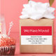 This bright red and white moving announcement as two fields. The red field says 'We have moved'. Use the white field to customize your window decal with your company's name, address, and phone number.