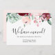 'We have moved', elegant watercolour burgundy and pink floral announcement flat card. Let your friends and family know you have finally completed on your purchase and where they can find you. The card can be customized with the inclusion of your family name and new address. The back of the card bears the message 'we hope to see you soon' and you are welcome to keep the design text as-is, edit or delete. A new home equals new beginnings and new memories!