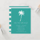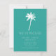 Tropical moving announcement featuring a palm tree set on a turquoise blue background with a fresh & modern stripe back.