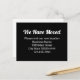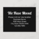This moving announcement postcard has a white text you can customize. This black postcard currently says We Have Moved Please Visit Our New Location. Additional lines of text are available for your business name, new address, and phone number.