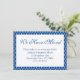 We Have Moved Preppy White Ogee Pattern on Blue Enclosure Card