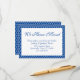 Keep your friends and family up to date with your new address using these simple, elegant enclosure cards. A header note reads "We Have Moved" at the top, using a pretty, traditional script font. Use the template fields to add all your details to personalize this design for your own use. The blue type was placed over editable white with a wide matching border and reverse solid background. The solid surfaces were overlaid with a cheerful, preppy white "ogee" pattern! You can change the backgrounds and all type to any colour you wish. Likewise the fonts can be changed if you prefer any such variations to the design.