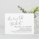 This is the wedding elopement party invitation card, with minimalism / minimalist black script design (We have tied the knot).