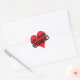 We Love Referrals business message with a red heart. Let employees wear the button to remind customers to refer others, or use the stickers on your products or invoices for networking and marketing materials sent to clients.