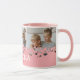 Modern grandmother mug featuring a photo collage of the grandkids, a cute pink heart design, the saying "we love you grandma", and the childrens names.