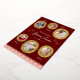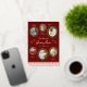 Add a special touch to Grandma's day with this personalized photo design notecard with gold foil. Greeting card has six image spaces in antique gold frames. There are also five text fields for names or other text. The centre text says "We love you Grandma" and is also editable. The background is a pretty red with accents of pink. There are also several hearts. The back has space for additional text.