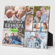 Create your own personalized, custom colour photo display on this easel-back plaque for a special grandfather featuring an easy-to-upload photo collage template with 8 pictures in various shapes and sizes and your custom text in your choice of text and background colours (shown in white on grey). The sample shows WE LOVE YOU GRANDPA in modern, fancy calligraphy typography. Ideal for making a keepsake gift for Grandparents Day, Father's Day, his birthday or as a holiday gift or for a first-time grandfather. ASSISTANCE: For help with design modification or personalization, colour change or transferring the design to another product, contact the designer BEFORE ORDERING via the Zazzle Chat MESSAGE tab below or email makeitaboutyoustore@gmail.com.