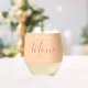 Modern We Love You Mom Happy Mothers Day Custom Names Stemless Wine Glass. Minimalist, sweet, pretty and simple typography. Text are "We love you", "Mom", and "Your Names". All the text can easily be changed to your own lovely messages. Order this cute wine glass today to express your love and thanks to your wife, mom, grandma, aunt, and the mothers in your life!