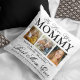 Elegant mothers day pillow featuring 3 pictures of your beautiful children, the text "we love you mommy", the kids names, and another cute saying that reads "best mom ever, if I know what love is, it's because of you". All of the text is fully editable so it can be can be personalized to suit any occasion.