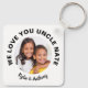 Celebrate the world's best uncle with this custom photo white keychain. Easily personalize with a favourite photograph (crop to a square orientation with the subject in the middle before uploading for best result). You can personalize the expression "We Love You Uncle" to something similar in length such as "Best Uncle Ever" or "World's Greatest Uncle." On the bottom you can add children's names or other text.