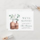 Elegant new home / change of address moving announcement with watercolors of eucalyptus greenery in terracotta vases. Personalize with your family name in a stylish sage green script, change the "We've Moved" text if desired and add your new address. On the reverse side you can customize your announcement and include a telephone number and email if desired.