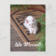 Pretty photo of a white kitten resting on a welcome mat, with message, "We Moved!", is featured on this postcard. Add your new address on back of this postcard using personalized text feature so everyone will know where to come to visit you!