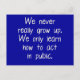 You may act mature in public, but that doesn't mean you've grown up! Tell everyone you're still young at heart with this: "We never really grow up. We only learn how to act in public."