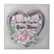 We Ride Together Heart tile, apparel, t-shirts, gifts by ArtMuvz Illustration. Features a watercolor heart with roses and two horseshoes tied together with ribbon. To personalize add your name or add text instead. Customize this tile to make it uniquely yours or to give as a personalized gift