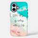 "We rise by lifting others up" quote on a phone case with a beautiful teal sky. Motivational and inspirational, personalize this custom phone case with your name initials or give it as a gift. Unique and special. Modern typography script, hand-lettering style.