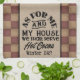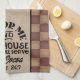 These cute primtive style kitchen towels are just perfect for your country home. Decorative typography reads "As for me and my house we shall serve Hot Cocoa.. Winter 24.7". It is set against a creamy tan background. The towel is then bordered by a rustic barn red and an earthy tan colour check.