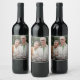 Modern wine bottle labels designed for vow renewal ceremony. Design features typography script ''we still do'' , photo and names.