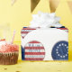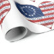 Colorful red, white and blue original 13 state Betsy Ross American flag in the shape of a heart, with the first line from the Preamble of the United States of America Constitution.