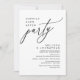 Mark the beginning of your forever with elegance using our romantic contemporary black and white theme wedding elopement happily ever after brunch lunch dinner party celebration invitation card, "Happily ever after party". Perfect for couples extending their joyous occasion, this invitation exudes sophistication with a hint of playfulness, setting the stage for a memorable event. Adorned with a timeless modern script design theme, it adds a touch of refined charm to your festivities. Crafted by TeeshaDerrick, this invitation promises to beautifully capture your love story.