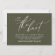 Mark the beginning of your forever with elegance using our romantic contemporary rustic olive green theme wedding elopement happily ever after lunch, brunch, reception dinner party celebration invitation card, "We tied the knot". Perfect for couples extending their joyous occasion, this invitation exudes sophistication with a hint of playfulness, setting the stage for a memorable event. Adorned with a timeless modern script design theme, it adds a touch of refined charm to your festivities. Crafted by TeeshaDerrick, this invitation promises to beautifully capture your love story.