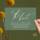 Mark the beginning of your forever with elegance using our romantic contemporary rustic sage greenery green theme wedding elopement happily ever after lunch, brunch, reception dinner party celebration invitation card, "We tied the knot". Perfect for couples extending their joyous occasion, this invitation exudes sophistication with a hint of playfulness, setting the stage for a memorable event. Adorned with a timeless modern script design theme, it adds a touch of refined charm to your festivities. Crafted by TeeshaDerrick, this invitation promises to beautifully capture your love story.
