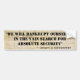 We Will Bankrupt Ourselves For Absolute Security Bumper Sticker