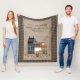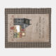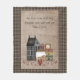 This rustic fleece blanket is the perfect touch to your country home. There's a grey saltbox colonial house with a star in the peak, a canning jar filled with cinnamon rolls, a stack of primitive boxes, a gingerbread man, a punched tin heart picture and lots of red pip berry vines. The background is done in a warm and cozy faux linen fabric with a black and tan check border. You can bring some spirituality into your home with this blanket which reads "As for me and my house, we will serve the Lord", a quote from the Book of Joshua, 24:15. Several other coordinating designs are available in my shop, as well as matching pillows.