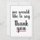 A casual "we would like to say thank you" card. Red and black workplace thank you card that you can make personal with a nice gesture from the boss, co-worker or staff on the inside. Just use the "personalize this template feature' to edit the text to make it your own. Other paper styles available.