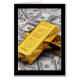 Money concept showing two gold bars and many one hundred dollar bills underneath.