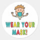 Wear Your Mask features a mask-wearing guy giving the thumbs up of approval with the wear your mask message below. Encourage others to mask up with this fun pro-mask design.