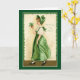 Pretty, vintage picture of a young miss dressed up for St. Pat's Day is featured on this greeting card. Front of card reads, "The Wearing of the Green" and inside of card reads, "May your St. Patrick's Day be filled with many Blessings"! A great way to send those Irish greetings to family and friends.