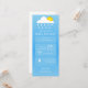 Weather forecast app inspired neutral baby shower invitation featuring clouds and sun over blue background with custom white text and icons.