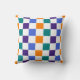 Weathered Chequerboard Orange, Teal, Blue, Purple Throw Pillow