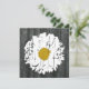 A wedding invitation featuring a background of barnwood on front and back. Front features an illustration of a daisy with the effect of cracked paint. Opposite side featuers matching white cracked paint square. Personalize with details of your event. Wording is from bride and groom together with parents.