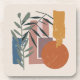 This simple and elegant boho influenced design is weathered and distressed shapes with two plan t stalks in earthy shades of orange, brown, green, and blue.
