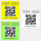 Personalize our rounded square weatherproof QR code labels with your company logo, QR code link(s), and custom text. These are professional waterproof stickers printed on 3M™ Scotchcal™ high-performance vinyl. They are scuff and tear resistant with strong adhesive backing. The dimensions are 1.5 inch x 1.5 inch. Designed in bright yellow and other colours (all colours are customizable). You can customize up to three different designs on one sheet (each with a different QR code URL). Low minimum order quantity (30 labels) and no setup fee.