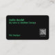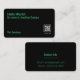 A business card designed for developers, featuring a dark background with a minimal design that attempts to emulate a terminal feel. QR code was generated using qr-code-generator.com which allows for dynamic QR codes that can be updated and tracked as needed.