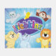 The classic Webkinz logo anchors this image of a happy Webkinz Pup, Hippo, Lion, Monkey, Bird and Cat. An exciting striped blue background accents their joyful expressions, especially the Pup and Hippo high-fiving in the foreground!