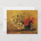 wedding acceptance card, Vincent van Gogh, Vase with red and white carnations on yellow background . With meal selection, number attend, accept or reject ans signature.
