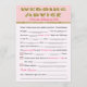 Wedding Advice Bridal shower game Card