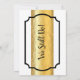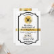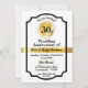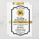 Personalized invitation card for wedding anniversary in golden metallic effect design. Black, white and gold details in modern luxurious design party invitation card.