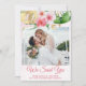 Pink and a bit of yellow watercolor floral wedding announcement. Customize names, dates, and information.