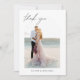 Wedding Thank You Cards that have a photo pictures and text on the front and back. The Thank you cards contain a modern hand lettered cursive script typography that are elegant, simple and modern to use after you minimalist simple wedding day celebration.