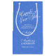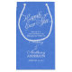 Cornflower blue and white lace Happily Ever After personalized wedding bag. Use it as a gift bag for your bridesmaids or as a wedding welcome bag or a gift bag at a bridal shower. The bride and groom's name can be personalized. Blue and white works for a spring wedding, summer wedding, or winter wedding. The subtle lace pattern adds elegance to the bag.