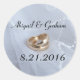 Don't lick envelopes, seal them with your very own customized sticker. Use these stickers to seal your invitations, thank you notes, or gifts. It features an image of a pair of golden wedding bands on a veil.