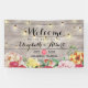 Wedding Banner Flowers String Lights Rustic Wood