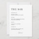 Elevate your wedding reception with this customizable Wedding Bar Menu Sign Template from Zazzle. Featuring a modern and elegant design, this template allows you to showcase your drink offerings in style. Personalize the text, fonts, and colours to match your wedding theme effortlessly. Perfect for an open bar, signature cocktails, or a curated drink list, this bar menu sign adds a stylish and practical touch to your special day!