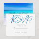 Blue ocean and beach scene modern tropical custom wedding RSVP