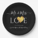Wedding Black Gold Heart Script Name Mr. and Mrs Paper Plate